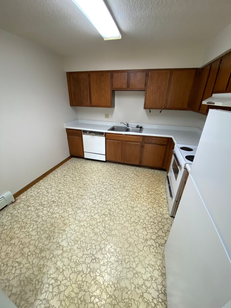 Inside, the unit features retro textured carpet that adds warmth and charm, along with essential appliances including a dishwasher. Tenants only pay for electricity, with just a $40/month utility fee covering the rest.